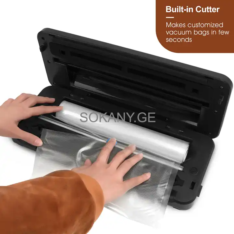 დამატებითი მახასიათებლები:კომპლექტში ამოსატუმბი მილი / ჩაშენებული საჭრელი / გამოდგება რულონებისთვის და ჩანთებისთვის / უჟანგავი ფოლადის კორპუსი