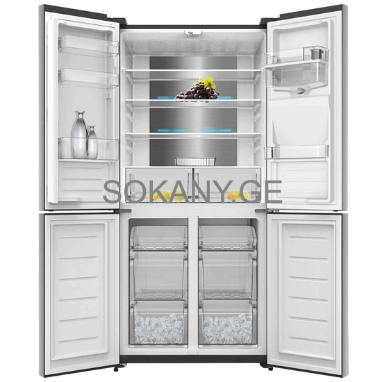 დამატებითი მახასიათებლები:ხილის და ბოსტნეულის სათავსო, კვერცხის კონტეინერი, წყლის დისპენსერი, LED დისფლეი