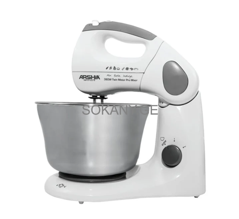 კომპლექტაცია:სტაციონარული მიქსერი, სათქვეფი, ცომის საზელი ჩხირები