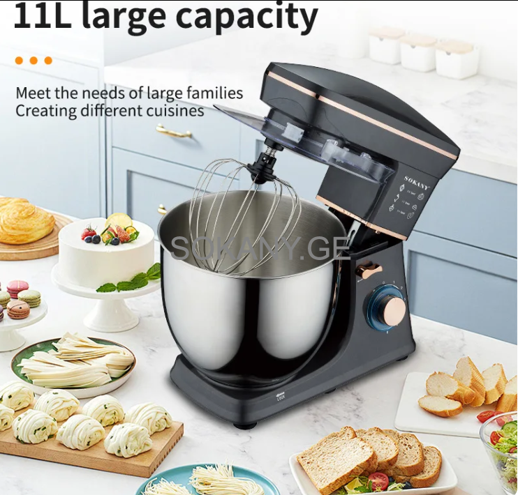 კომპლექტაცია:მიქსერი/სადღვები/ცომის საზელი კაუჭები/სადგამი