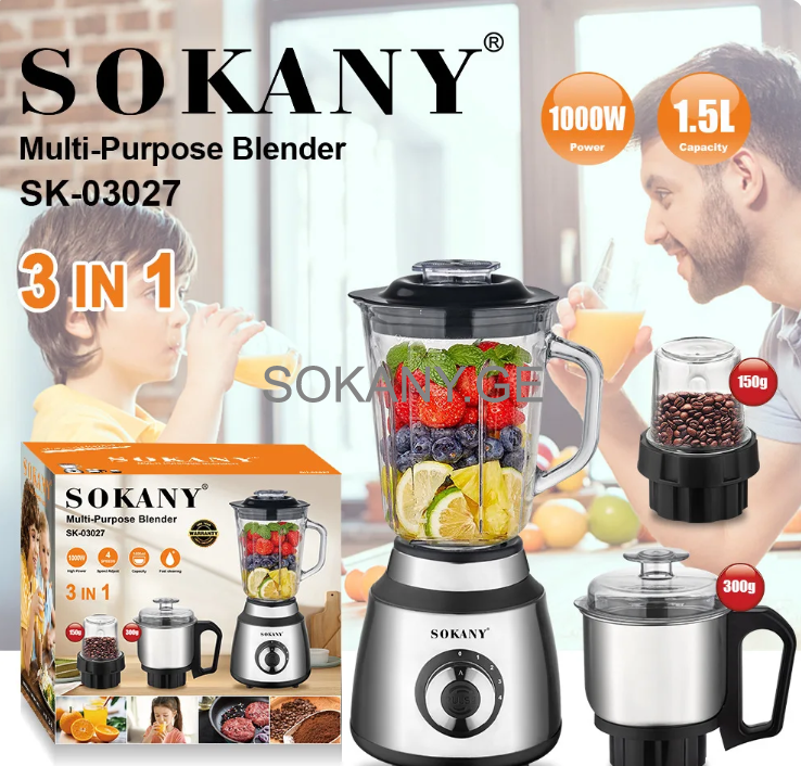 ბლენდერი (კომპლექტი) Sokany SK-03027 (ჩოფერი+საფქვავი)