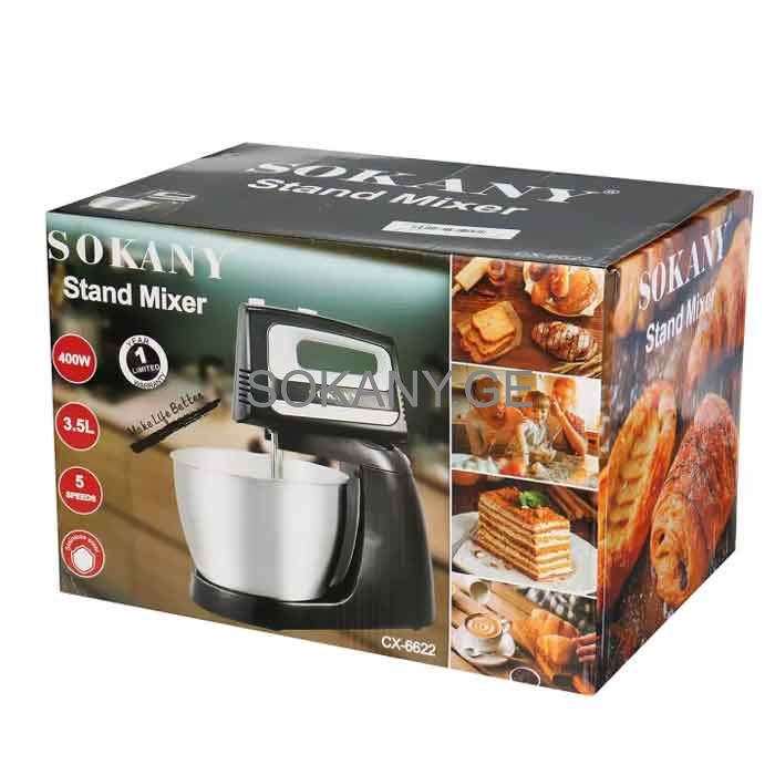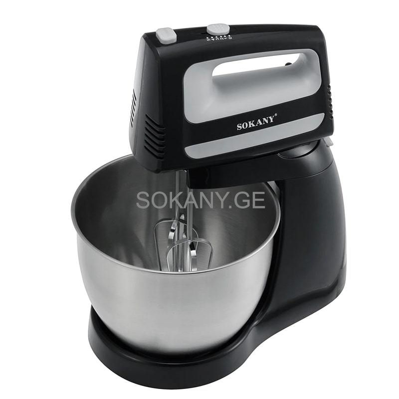 კომპლექტაცია:მიქსერი/სადღვები/ცომის საზელი კაუჭები/სადგამი/რეზერვუარი