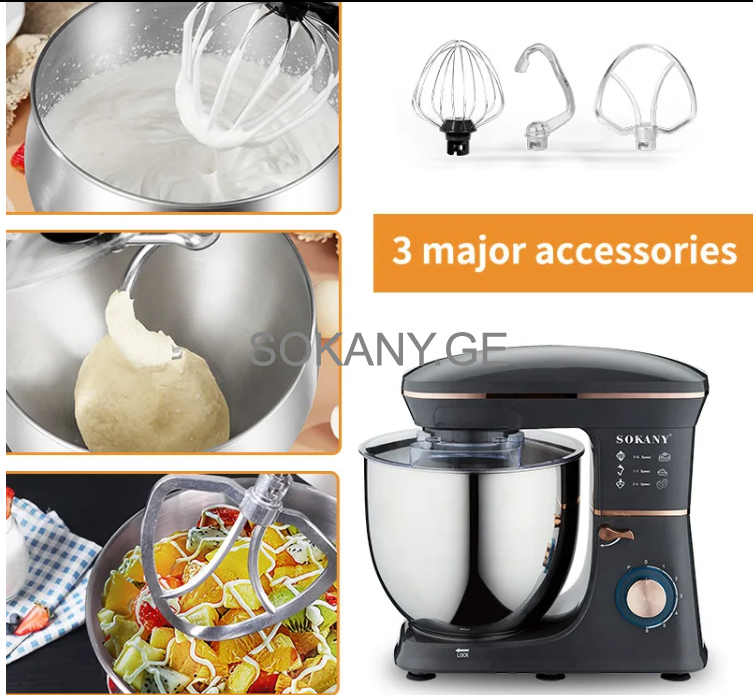 კომპლექტაცია:მიქსერი/სადღვები/ცომის საზელი კაუჭები/სადგამი