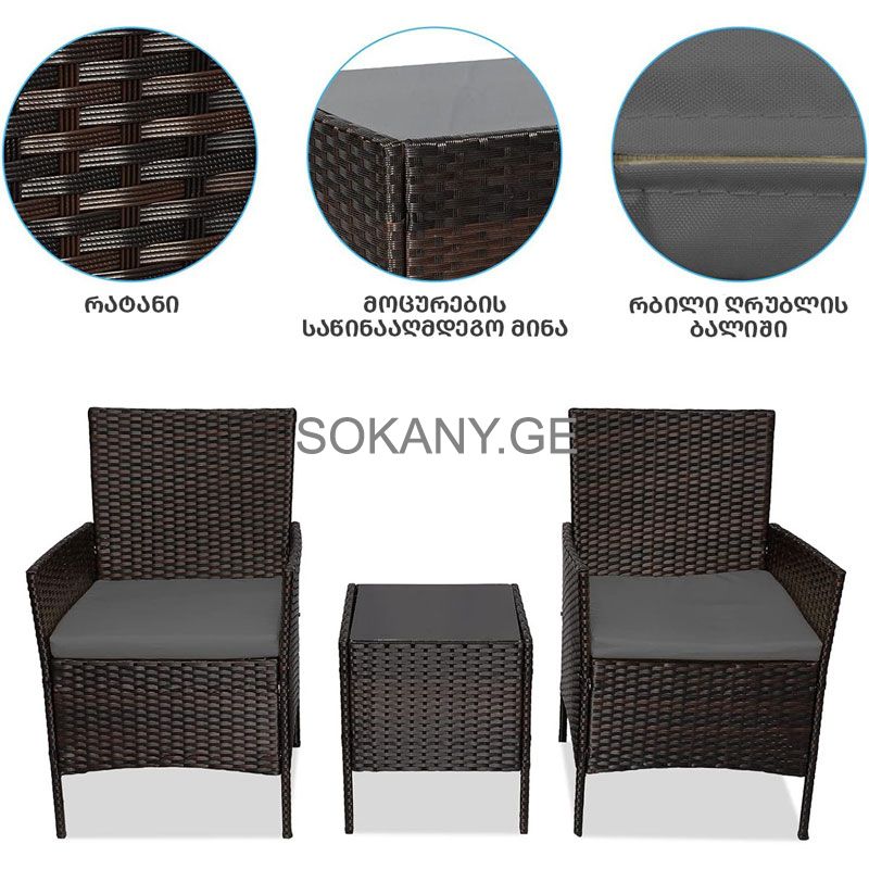 კომპლექტაცია:2ც სავარძელი, 1ც მაგიდა