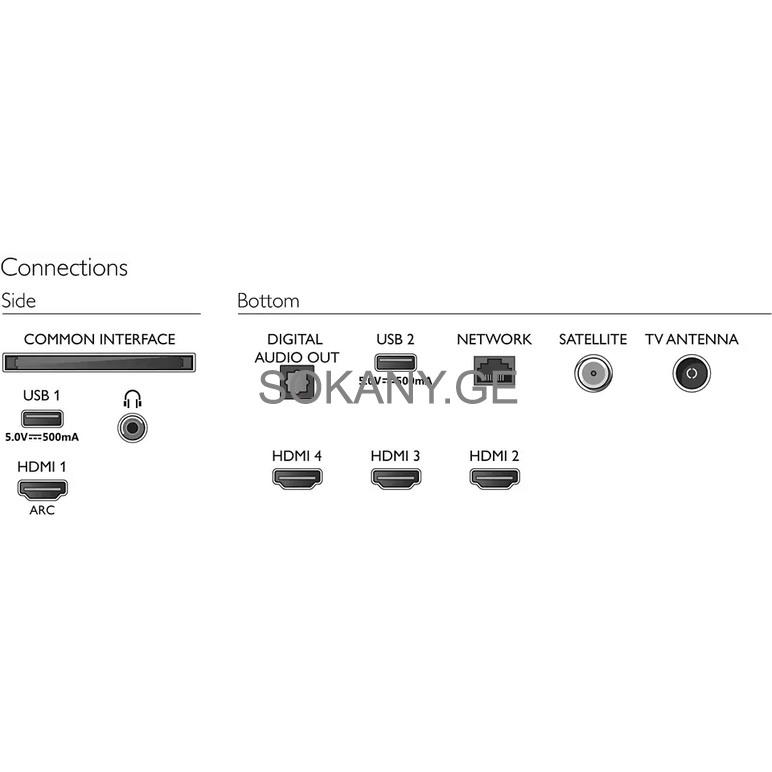 ინტერფეისი:• 2 x HDMI • 1 x USB • 1 x CI სლოტი • 1 x RJ-45 • 1 x Optical • 1 x RF (ანტენა) • 1 x RF (სატელიტი)