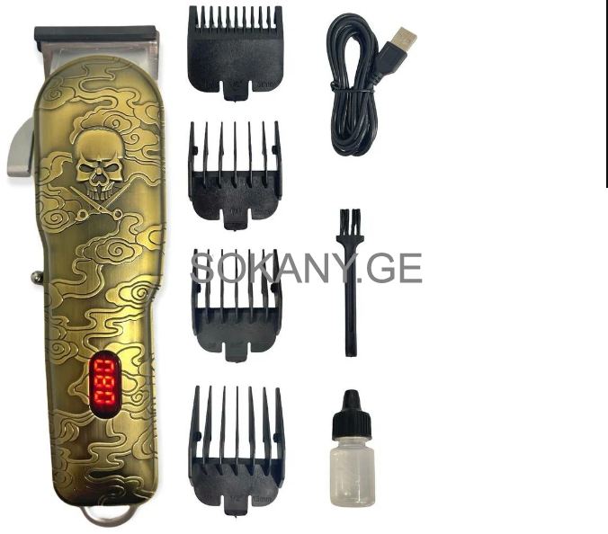კომპლექტაცია:თმის საჭელი/შესაჭრელი ზომები/დამტენი კაბელი USB/საპოხი ზეთი
